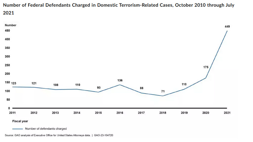 Government Accountability Office. "Rising Threat of Domestic Terrorism in the U.S. and Federal Efforts to Combat It." GAO.gov, August 2, 2023. https://www.gao.gov/blog/rising-threat-domestic-terrorism-u.s.-and-federal-efforts-combat-it.
